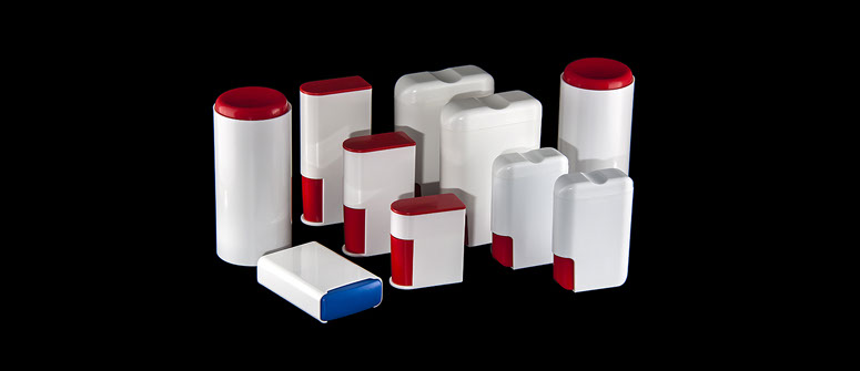 Envases dosificadores de comprimidos para edulcorantes, fabricados en PS y POM, de distintas capacidades, desde 100 hasta 1.200 comprimidos.