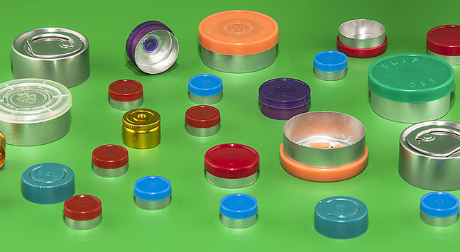 Diferentes tapas de aluminio y plástico para viales