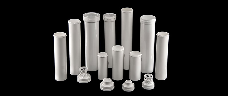 Tubos precinto de PP para comprimidos efervescentes con diferentes diámetros y capacidades. Disponemos también de tapas con desecantes para la perfecta conservación de los comprimidos.