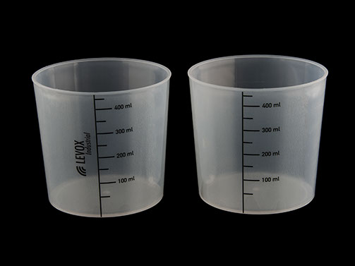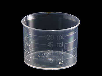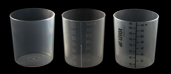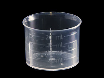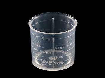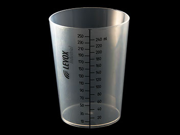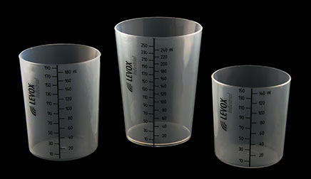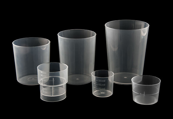 Vasitos dosificadores con posibilidad de escalas grabadas o personalizadas con impresión de escala y/o logo